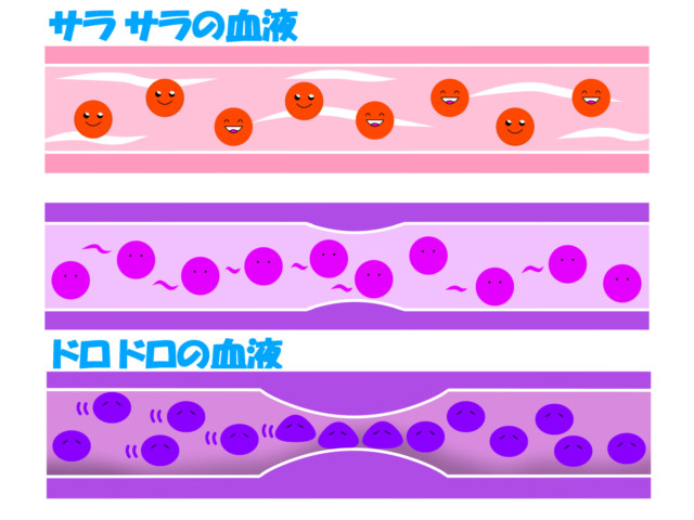 血液がドロドロに汚れている場合、ドロドロの原因を減らすことが大事です。血液サラサラにすることより、ドロドロに汚す原因を減らしていきましょう。