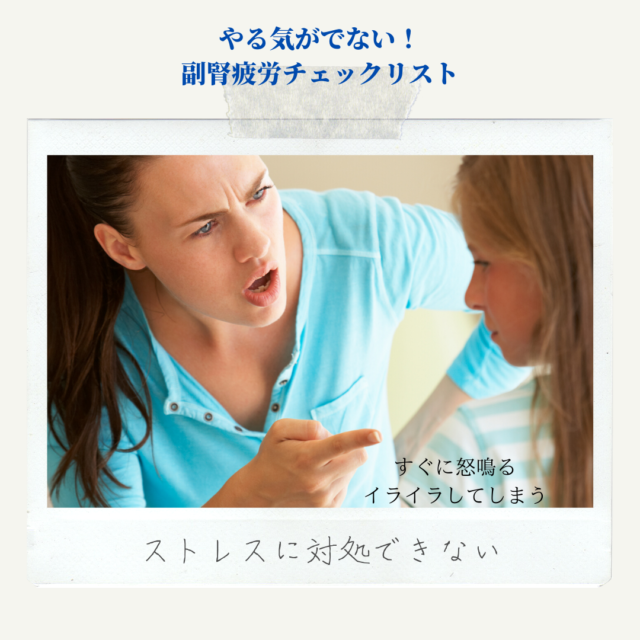 ストレスで副腎の機能が低下すると、やる気が出ない、食欲が止まらないなど自分の意思ではどうにもならないことが起こります。