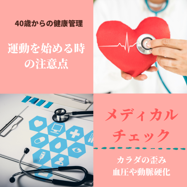 必ず、メディカルチェックを行ってから、自分のカラダにあった運動をはじめてください。
