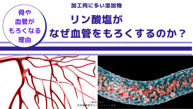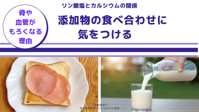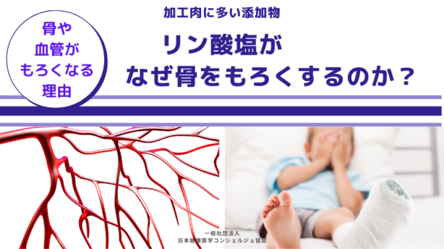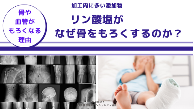 注意したいのが骨粗しょう症などで、カルシウムのサプリやカルシウムを多く含む食品を食べていても、リン酸塩を摂取することでカルシウムは吸収されず、骨の強化には繋がらないだけでなく、血管や臓器をもろくするのです。