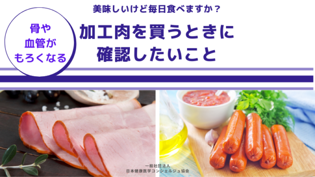 骨を強く健康にと言われている加工食品にもリン酸塩が含まれていることがありますので、成分表示を確認することをお勧めします。無添加で美味しいソーセージやハムは存在します。